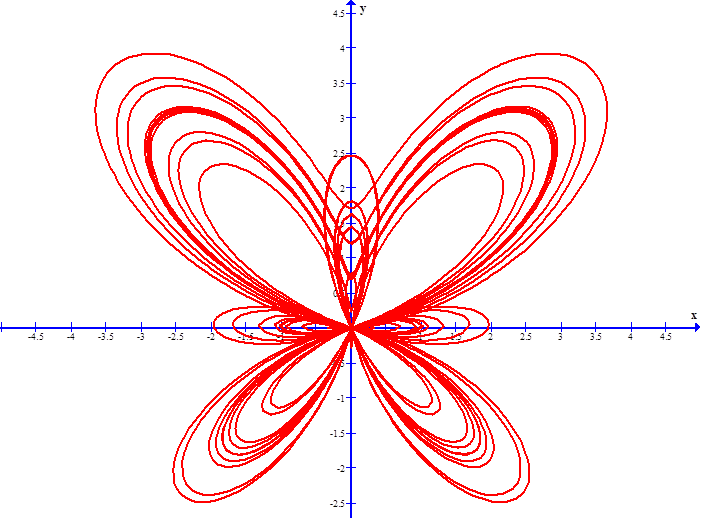 This is the so-called “Butterfly” curve: x(t) = sin(t) {exp[ cos(t) ] - 2cos(4t) - sin(t/12)^5 }