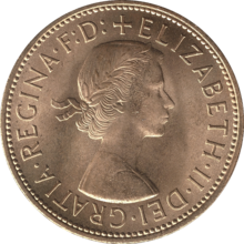British pre-decimal penny; bronze; 1970 and before; (about the size of a US half-dollar) |