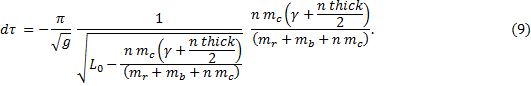 Equation (9) gives an expression for the change in period per coin for the regulation of a pendulum clock by the addition of coins on the bob. If the great clock at the British Houses of Parliament has a nominal period τ = 4 seconds, then the effective length, which is the true center of mass, must be