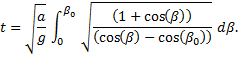 Thus, the period is independent of β0. Furthermore, no small-amplitude assumption has been necessary, so the initial angle may range up to π and the period will have the same value. |